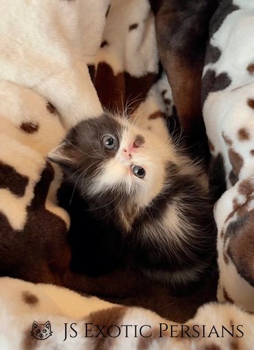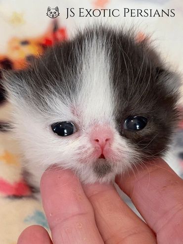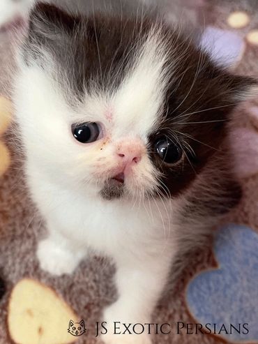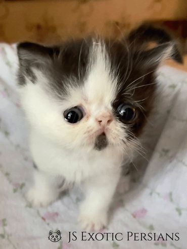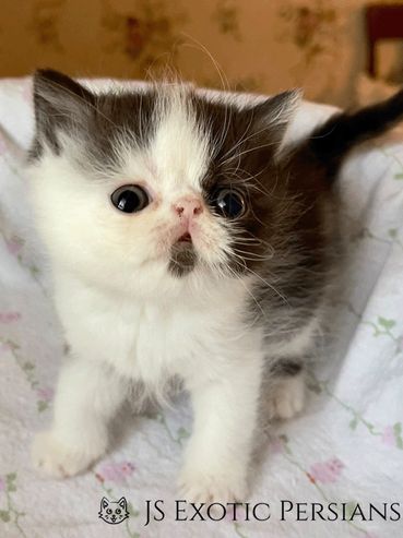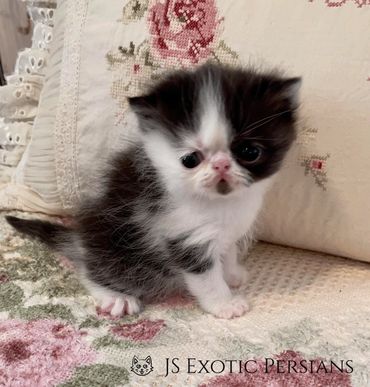 Olivia is our dainty little diva — a stunning bi-color black and white Persian with the sweetest, most outgoing personality you’ll ever meet. With her expressive round eyes and luxurious exotic coat that’s somewhere between short and long, she turns heads wherever she goes. Don’t let her delicate looks fool you: Olivia is full of charm, curiosity, and confidence. Whether she’s greeting guests with a chirp, exploring every nook with flair, or lounging like royalty, she brings a perfect blend of elegance and energy to our lives.